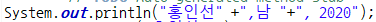 연산자가 앞에서 부터 시작되기 때문에 숫자를 더한다음에 뛰어쓰기가 출력된다. -> [4021 ]